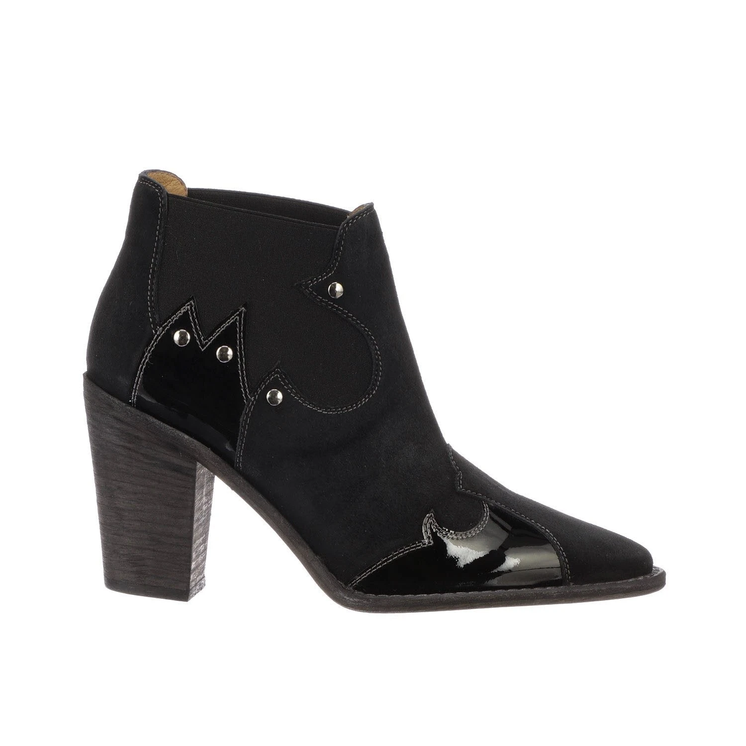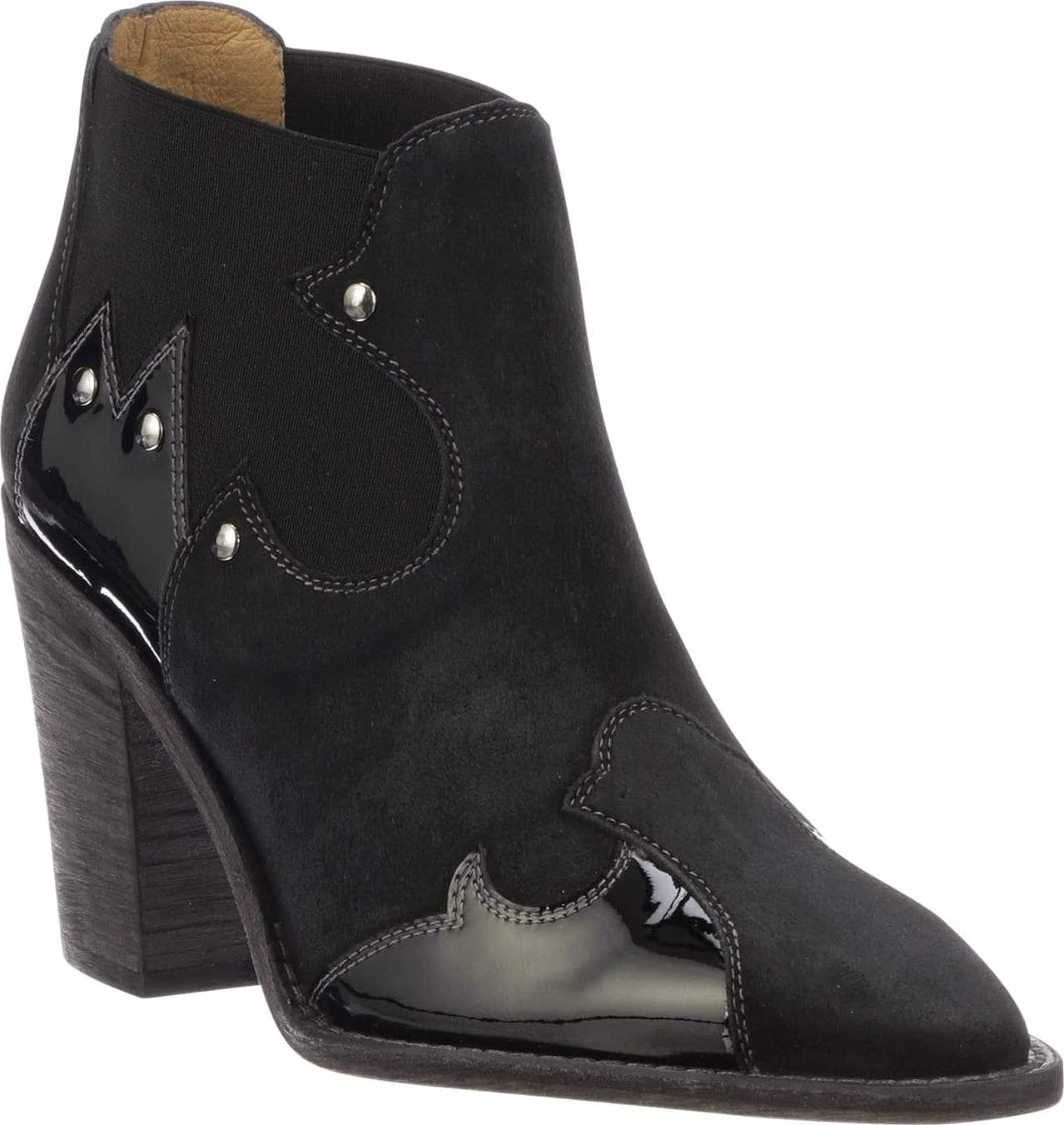 Stacy is a western take on the traditional Chelsea boot. The multi-piece construction adds depth while the studs and contrasting leathers add beautiful details. Leather sole. Imported.