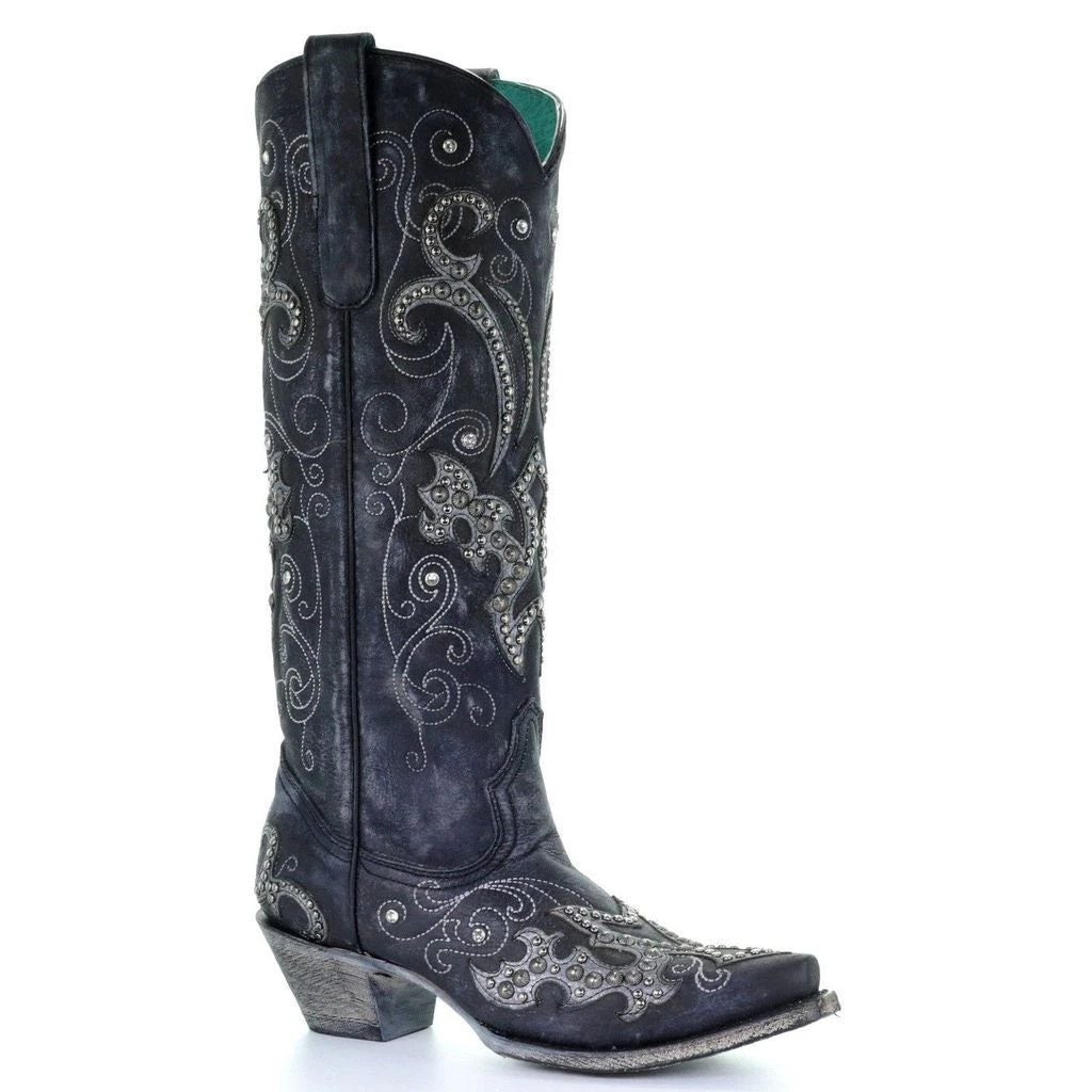 For cutting edge design and quality craftsmanship, cowgirls choose Corral. These gorgeous tall western boots are absolutely stunning. Featuring elegant embroidery, studded overlay and crystal detail, these boots will turns heads and garner compliments everywhere you go.