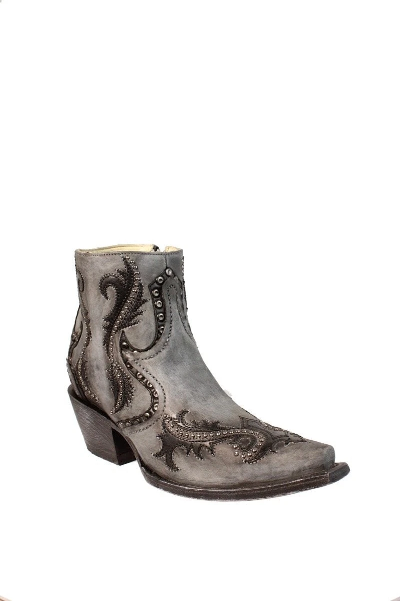 G1381 Corral Boots Women’s Grey Studs and Overlay Boot Bootie