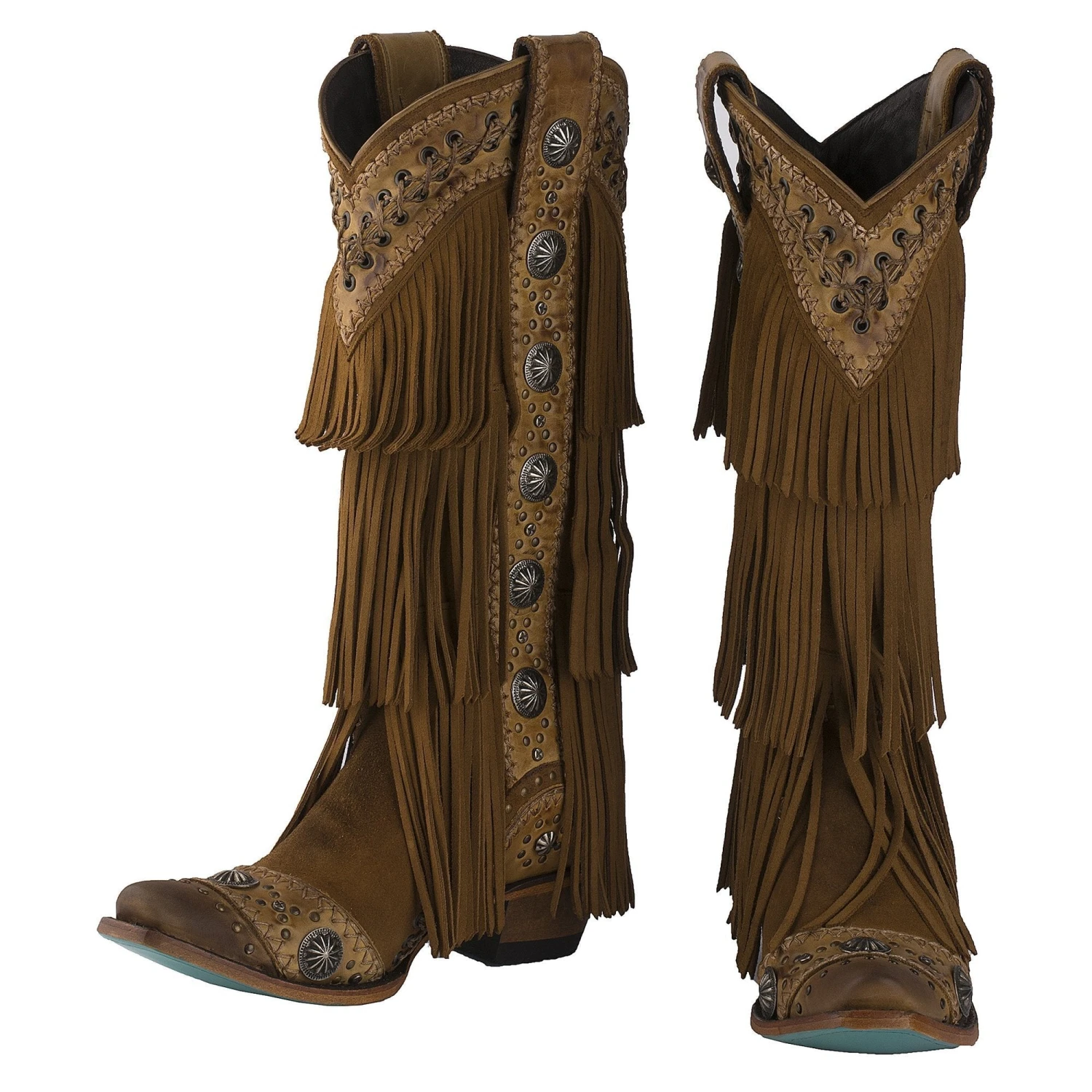 Wind Walker Boot by Lane features features hand-lacing, studs, vintage-inspired conchos, layered fringe and burnished suede in all the right places.