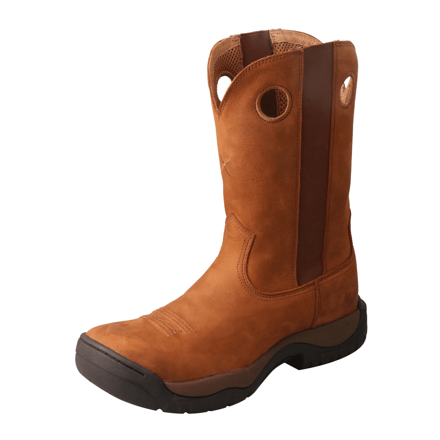 As the name implies, the Twisted X All Around collection is for a little bit of everything. Built for maximum comfort, the rubber-soled All Around is great for muddy, wet terrain, and the rubber toe guard provides added durability. The boots are lightweight, with an EVA midsole, and the XSD composite shank keeps foot stable. Styles also include our SD removable, moisture wicking, antibacterial and machine washable memory foam insole.