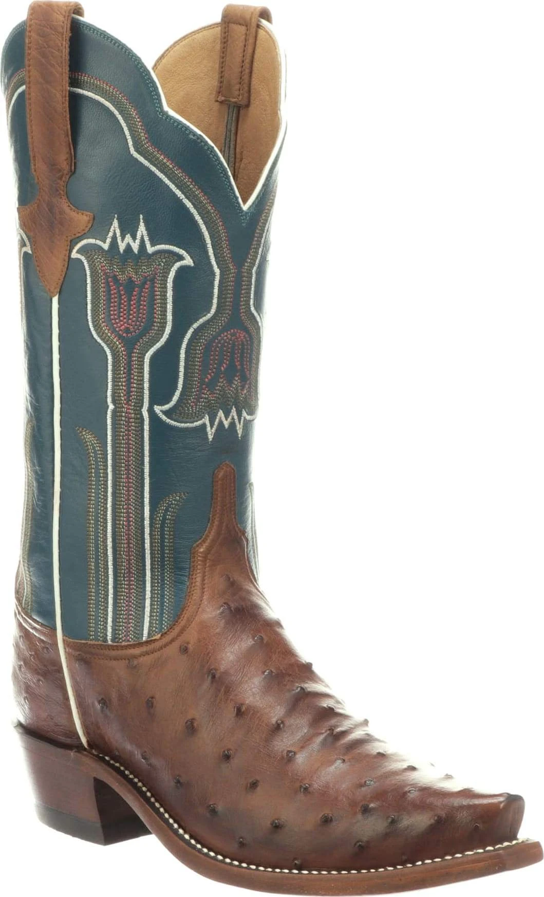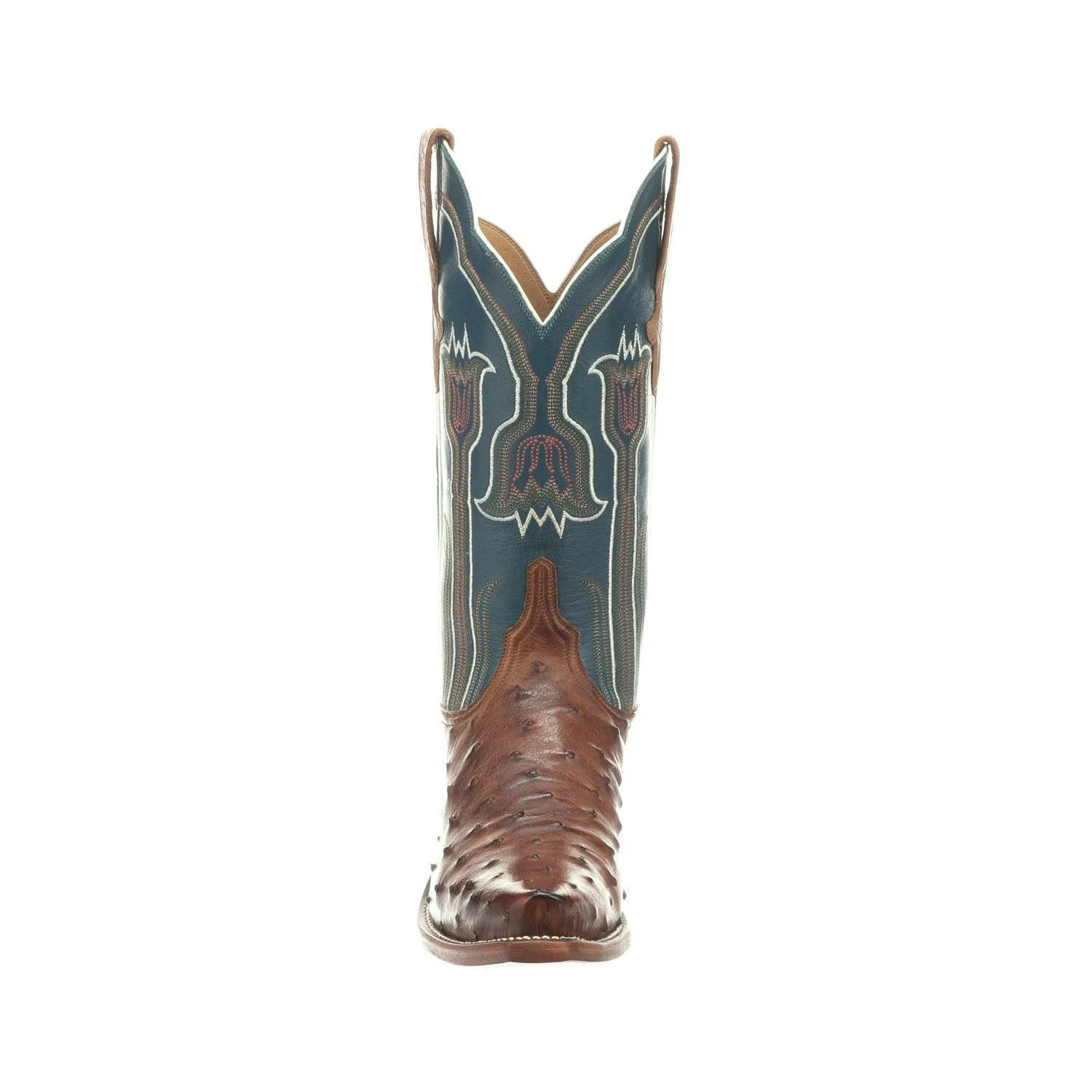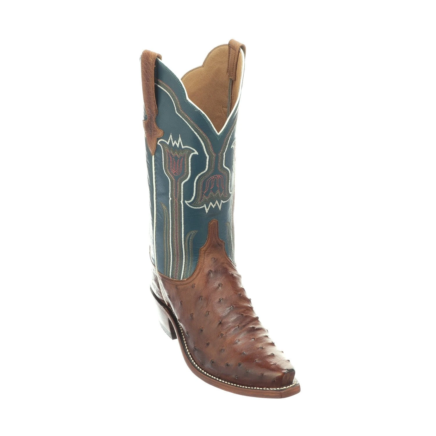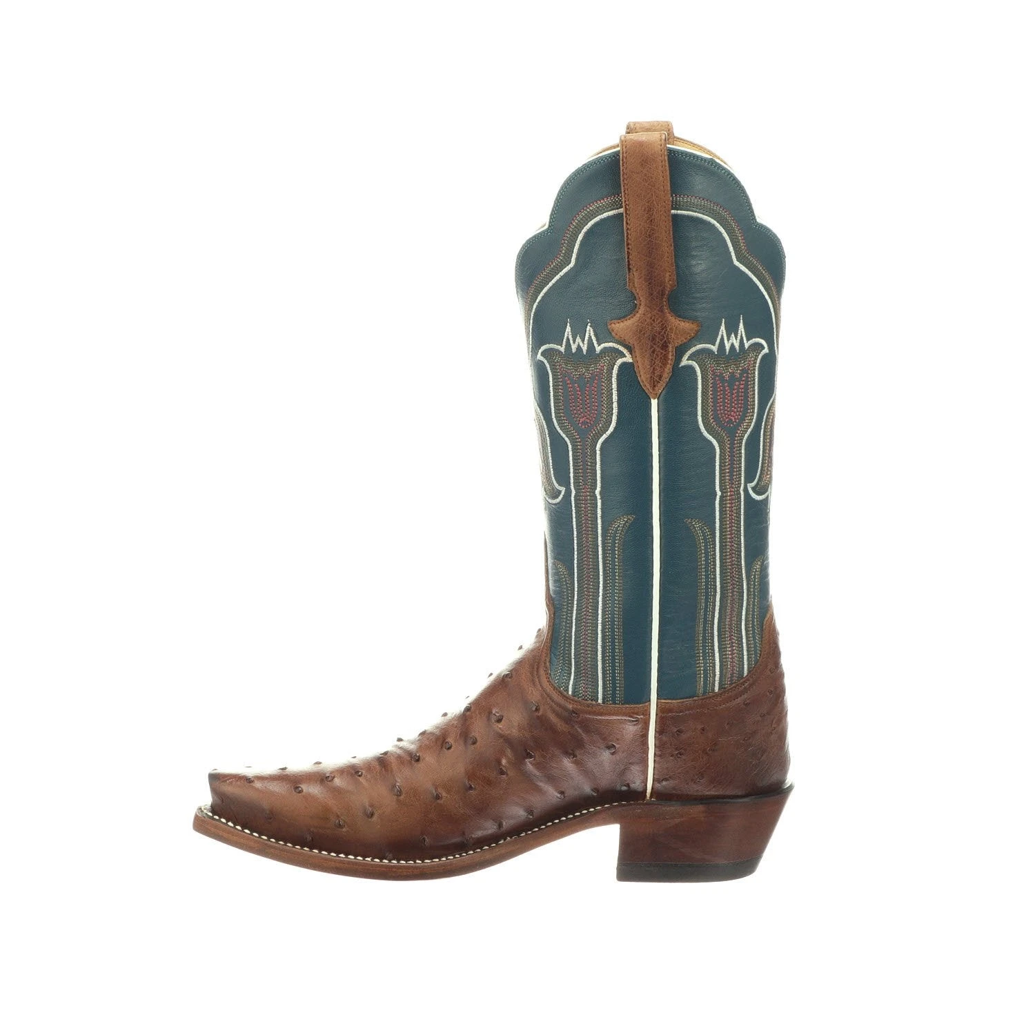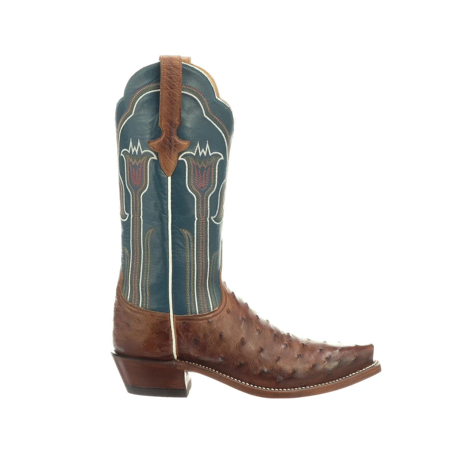 Maeve is a traditional western boot. Crafted from colorful full quill ostrich on the vamp, the quarters feature a delicate tulip stitch pattern. Single stitch welt construction. Leather sole. Handmade in Texas.