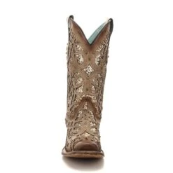 Corral Boots A3569 Corral Women’s ASHLEY Brown Inlay / Flowered Embroidery / Studs And Crystals Boot